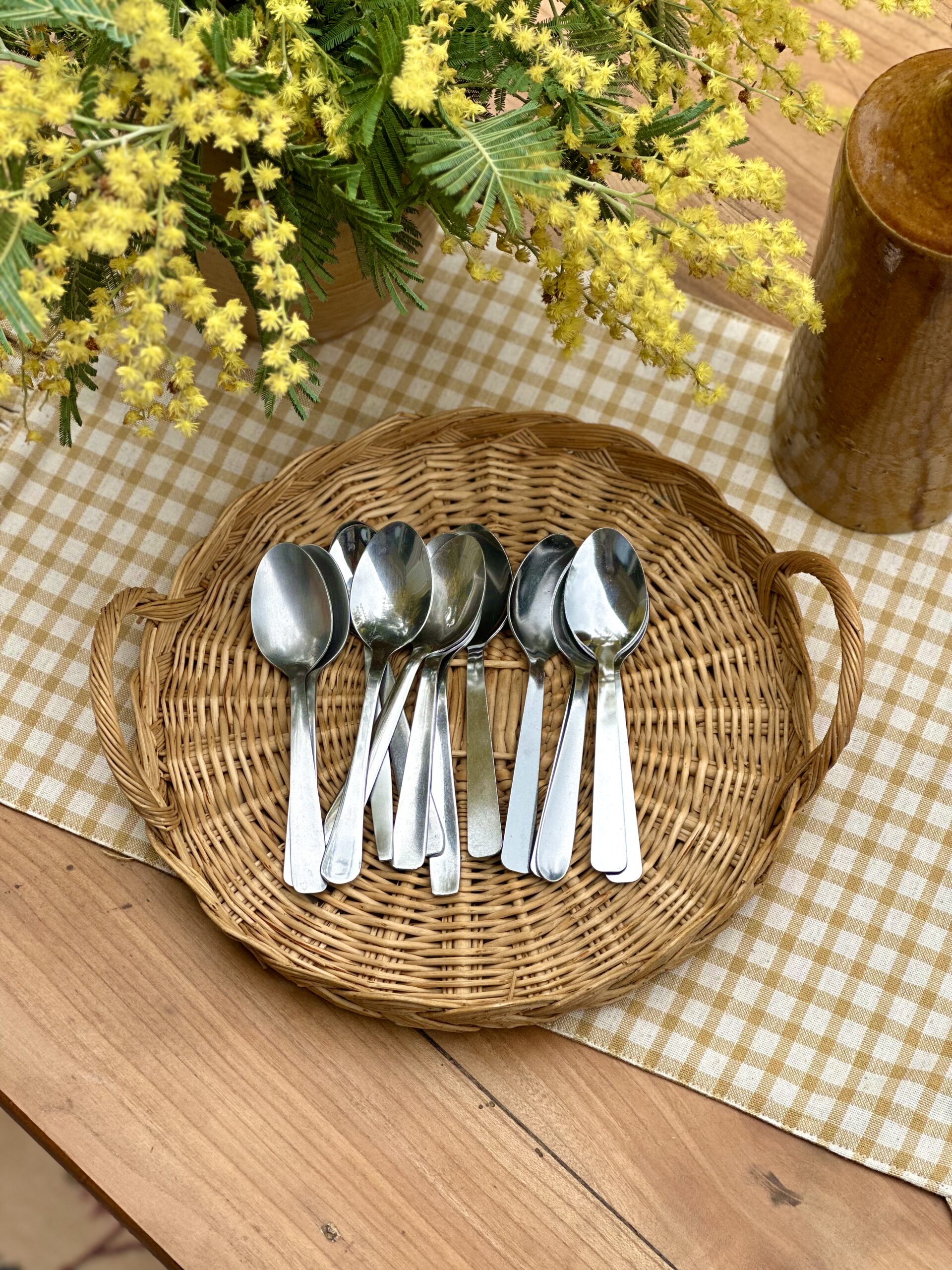 Nos cuillères de tables dépareillés en inox allient simplicité et esprit convivial. Et parce qu'on tient à leur éclat comme à votre confort, leur nettoyage, tout comme celui de l'ensemble de notre art de la table, est compris et entièrement réalisé par nos soins.