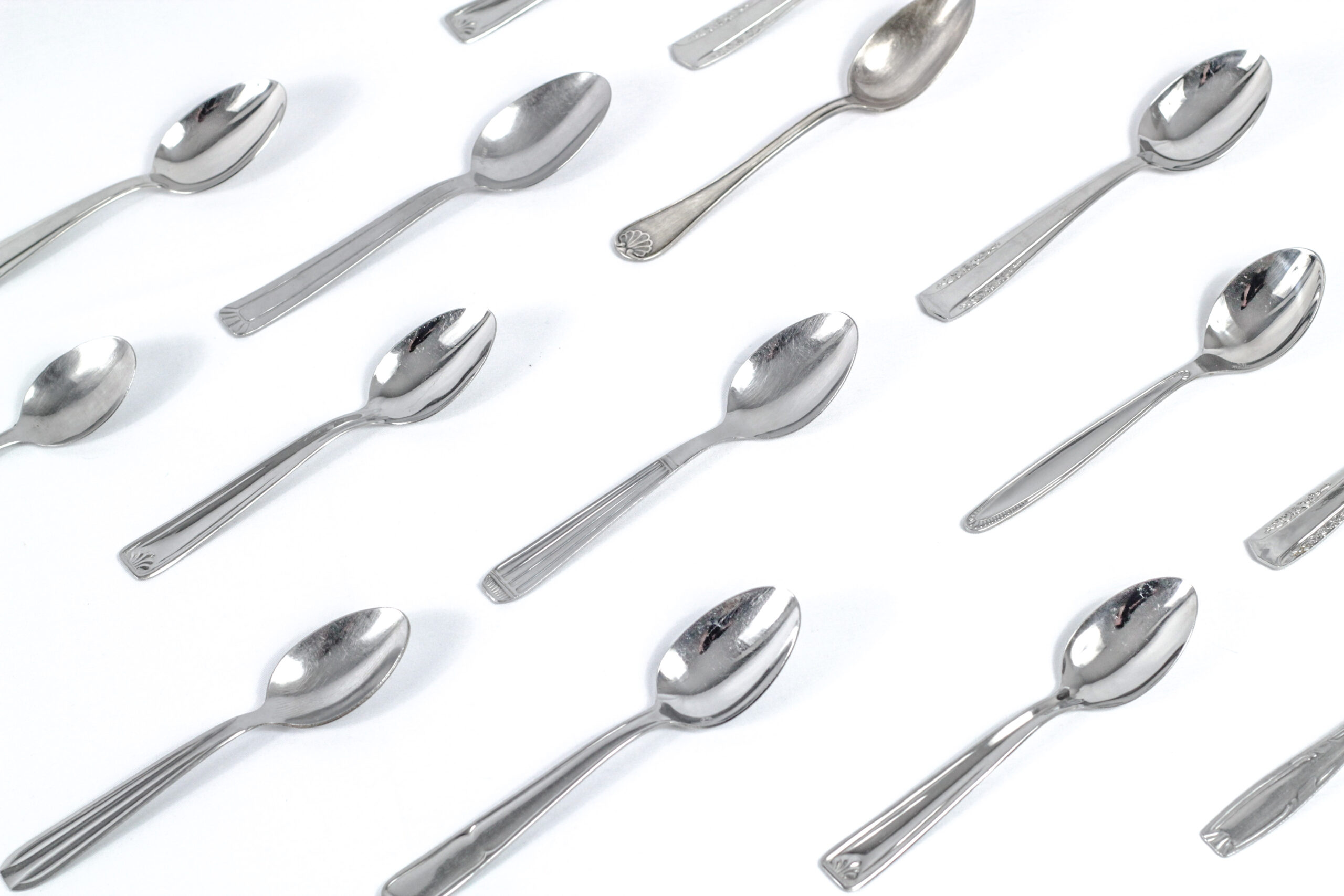 Nos cuillères vintage dépareillées en métal ou en argent apportent une touche rétro pleine de charme à vos tables. Et parce qu'on tient à leur éclat comme à votre confort, leur nettoyage, tout comme celui de l'ensemble de notre art de la table, est entièrement réalisé par nos soins.