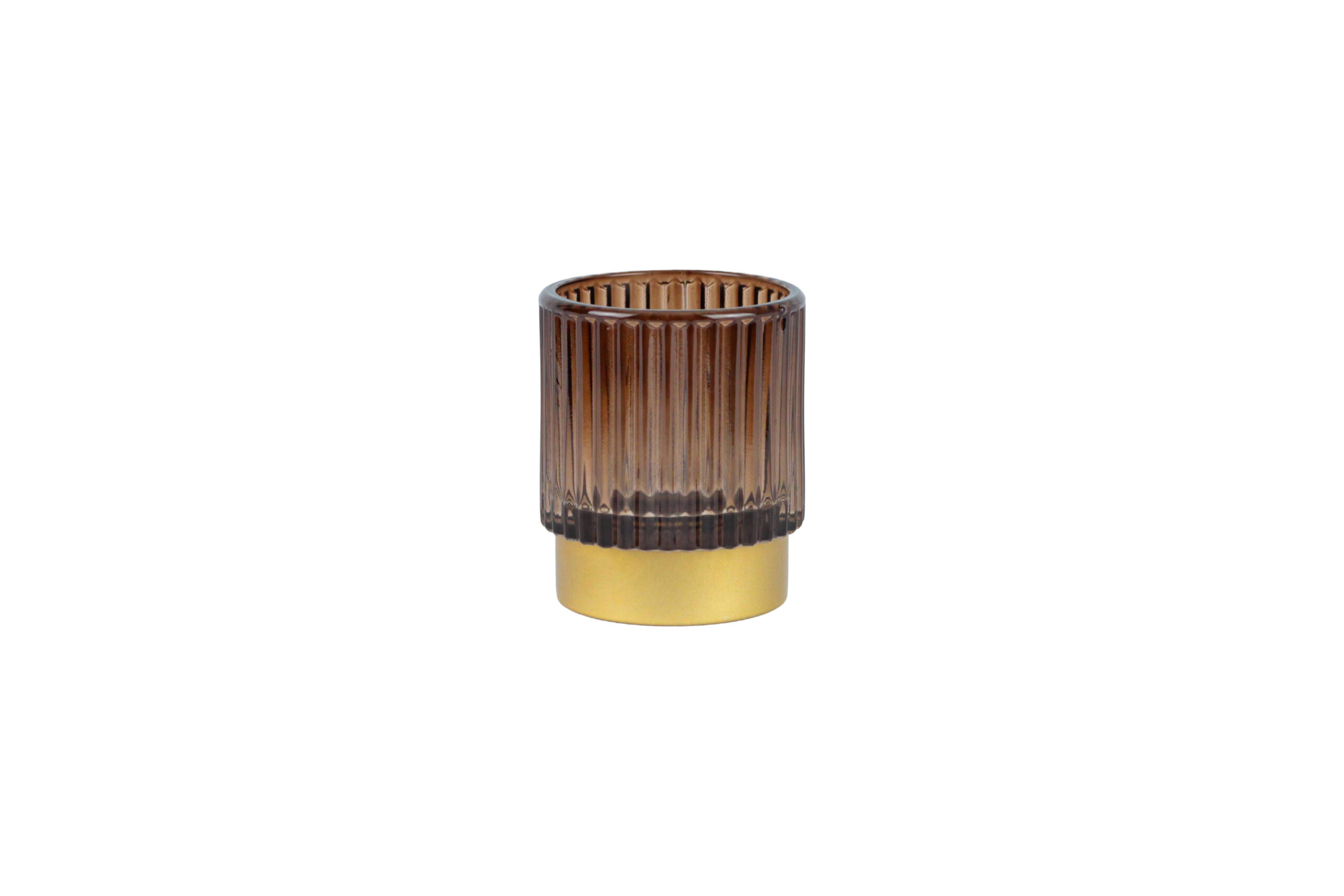 Nos photophores en verre strié Oria se disposent seuls ou en accumulation pour une lumière douce et chaleureuse.