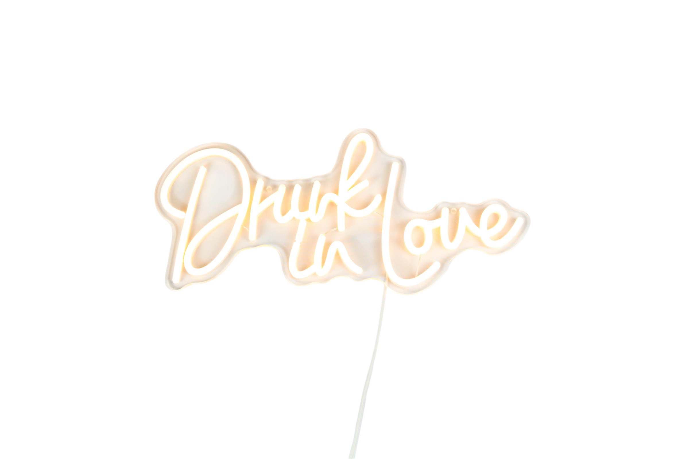 À suspendre sur un backdrop ou à poser près du bar ou du photobooth, notre néon LED blanc chaud Drunk in Love (« ivre d’amour ») met instantanément l’ambiance !