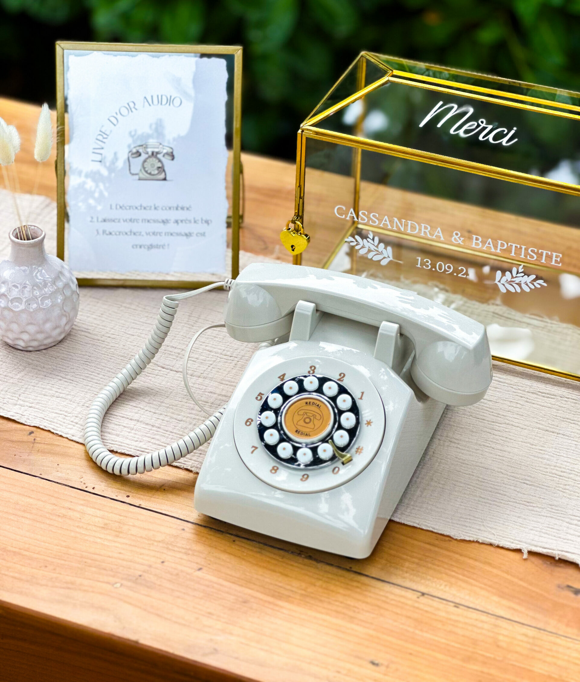 Notre urne Daphné est idéale pour recueillir mots doux et enveloppes ! À personnaliser avec vos prénoms ou initiales et la date du jour.