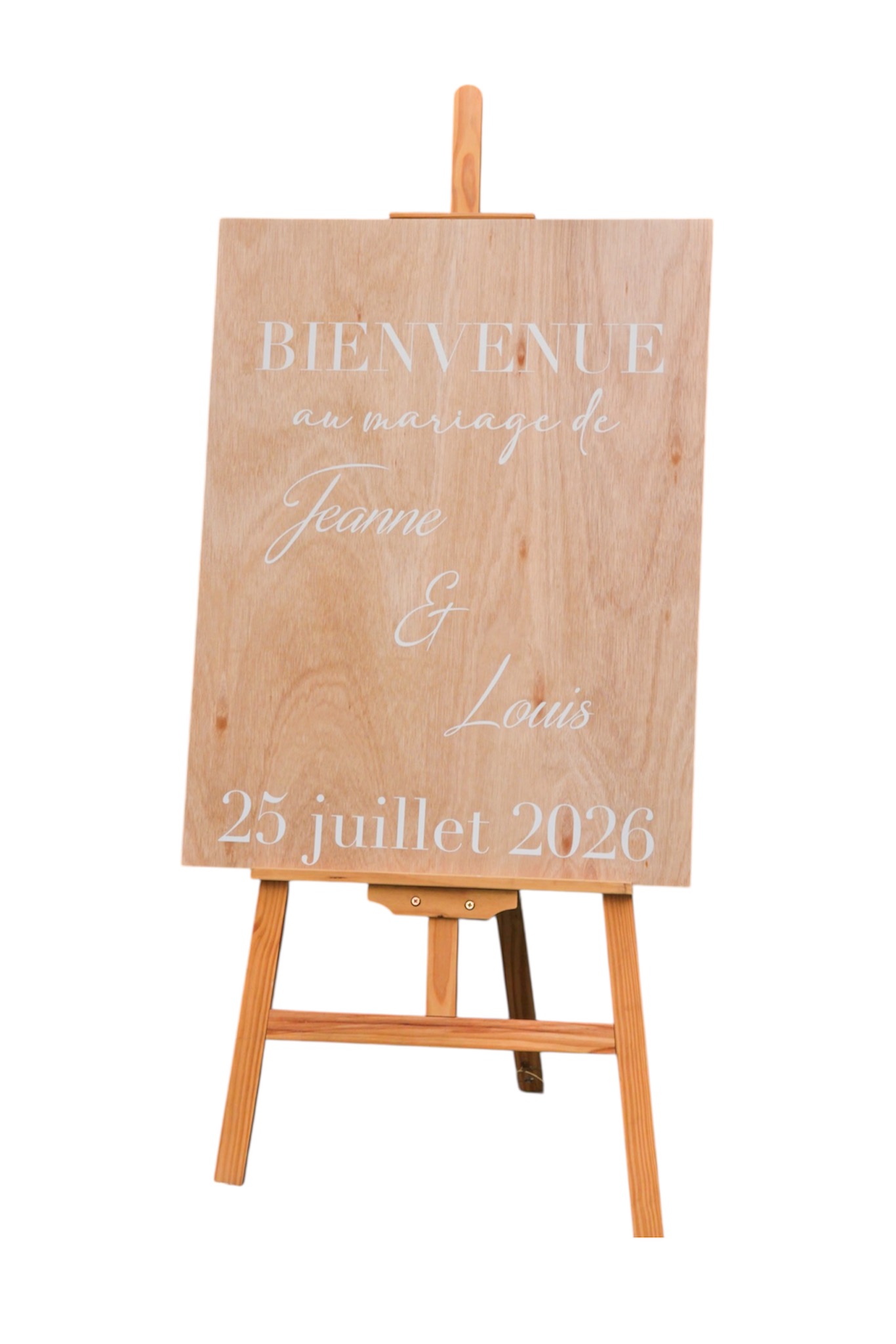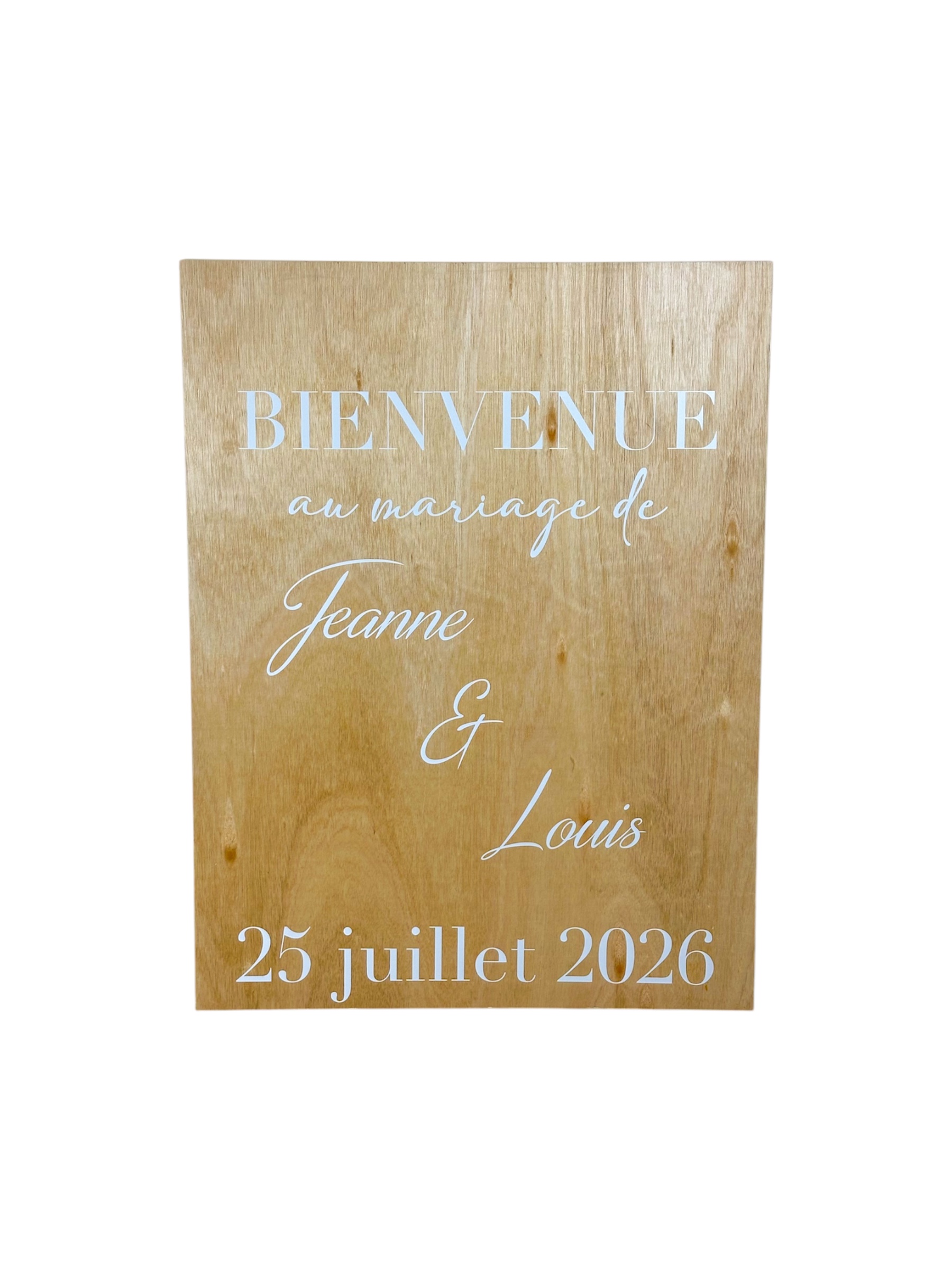 Souhaitez la bienvenue à vos invités avec notre panneau en bois personnalisé avec vos prénoms et votre date.